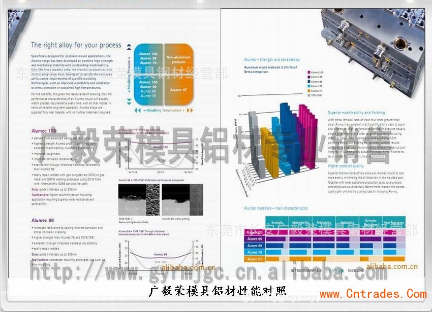 2.更快速、更輕便:您可以非?焖俚貙lumec89模具進行各種方式的加工、拋光及蝕刻,并獲得良好的效果。Alumec89在模具應用上可以根據不同產品的材質特性(如所使用的塑料、有腐蝕性的材料)選擇適合的表面處理,廣毅榮Alumec89這比用于制造模具的鋼所具有的硬度高的多。